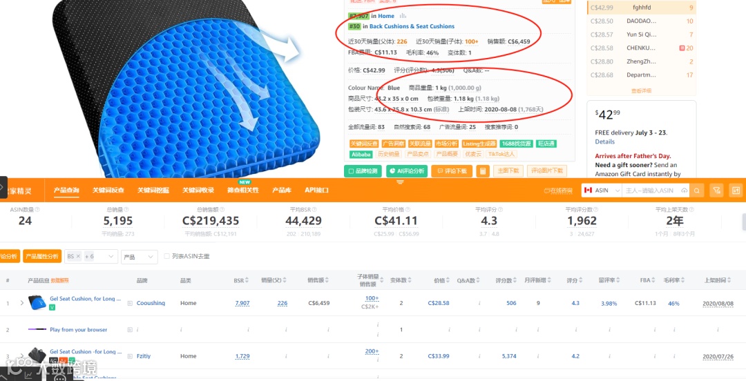 2025.06.11亚马逊选品推荐(仅供参考):蜂窝汽车坐垫
