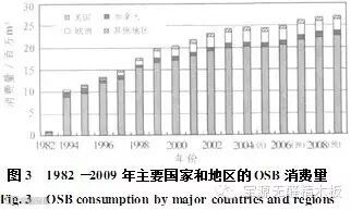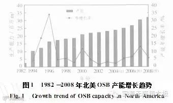 1994–2004年,受住宅建设拉动,美加OSB产量由964万m³增至2125万m³,增长逾一倍,占全球总产量的88%。加拿大2004年产量达915.8万m³,为1994年的3倍;美国同期为1994年的2倍。除1996年产能激增外,两国产量利用率长期保持在84%~95%高位水平。