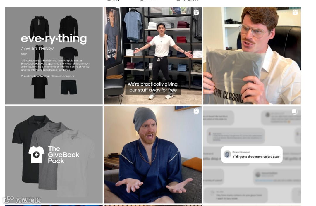 值得一提的是,True Classic非常擅长利用用户生成的内容来丰富其社交媒体资料。他们精心挑选并展示来自用户的真实反馈和体验,这不仅建立了品牌与消费者之间的信任桥梁,还进一步增强了品牌的信誉。