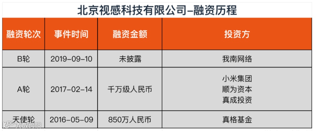 2017年,视感科技成功获得由小米科技、顺为资本和真成资本联合投资的1200万元A轮融资。