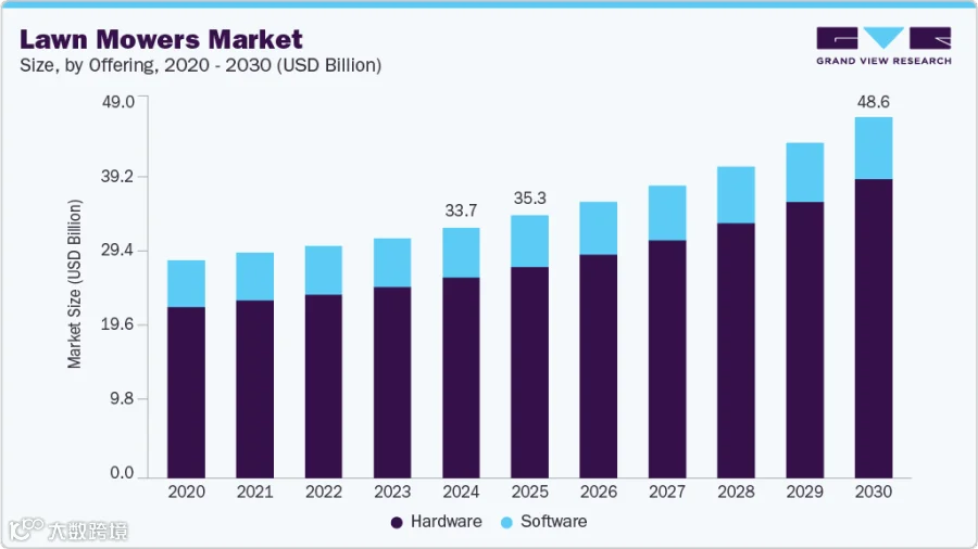 图源:Grandviewresearch能支撑起这个数字的,自然是一个庞大的用户基础。全球大约有2.5亿个私人花园,其中美国拥有1亿个,欧洲超过8000万个。这样的基数意味着什么?园林机械早已不是什么小众生意,而是欧美数千万户家庭的刚需。
