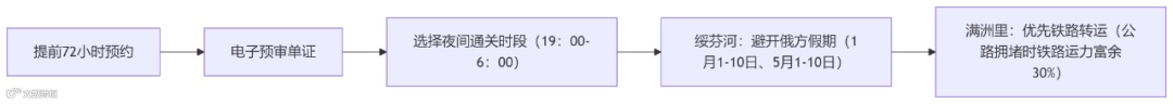 - 绥芬河:优先选择7-8月通行;若冬季必需,改用东宁口岸(距绥芬河60公里,负荷低30%)。