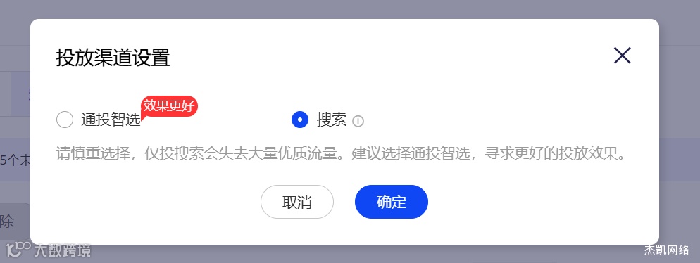 B端大买家主要通过关键词搜索来寻找供应商,而通投智选中C端买家比例较高。因此,若目标是获得高质量询盘,直通车计划中的投放渠道建议仅选择“搜索”渠道,并优先针对PC端用户进行推广溢价,APP端建议不进行额外投放。