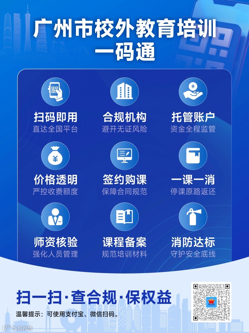 推广应用全国校外教育培训监管与服务综合平台(简称“全国平台”)和校外教育培训“一码通”(简称“一码通”) 。校外培训机构要落实教育部《全国校外教育培训监管与服务综合平台应用管理办法》要求,做好全国平台应用。在公示栏、收费处等显著位置张贴“一码通”海报,宣传引导报名的家长学生使用全国平台和“一码通”,通过官方途径开展在线选课、支付、退费等服务。