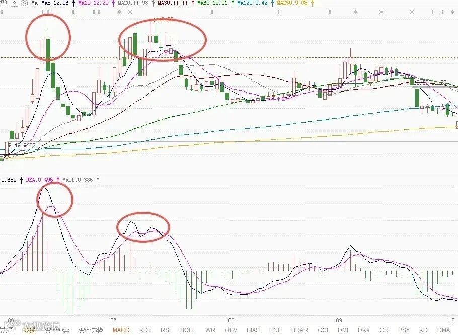 什么叫顶背离?就是股价一个高点比一个高点高,但KDJ的高点一个比一个低。这说明上涨的劲儿不行了,看着挺猛,其实就是强弩之末,这时候就得小心点。