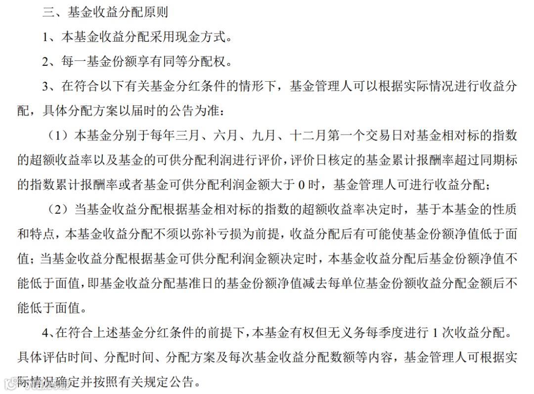 说得直白点,就是需要跑赢业绩比较基准,有超额收益。所以也并非绝对会按季度进行。