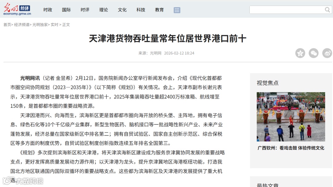 天津港货物吞吐量常年位居世界港口前十