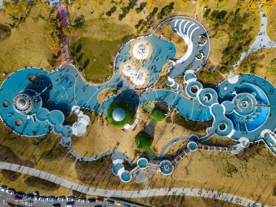 公园以“活力北滨,不负韶华”为主题,分一区、二区、三区同步建设,各区域功能各具特色、互补相融:一区聚焦科技与童趣,涵盖科技馆、童幻乐园;二区主打景观与休闲,包含石琴响雪、城市阳台和三桥桥下空间;三区侧重生态与运动,涵盖三水厂、原鄂渝钢材码头区域,配套建设停车场、网球场等设施。