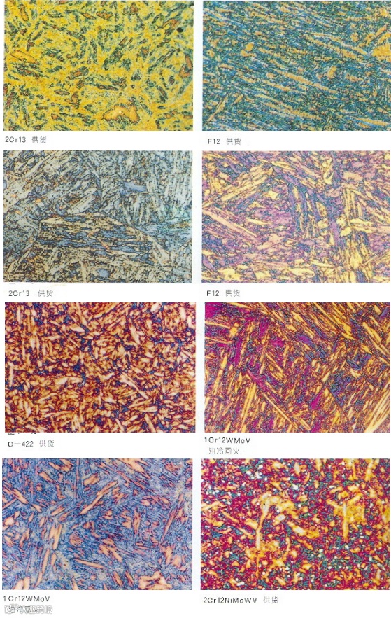 高铬钢,具良好耐蚀性与耐热性。退火态为铁素体+碳化物,经淬火+高温回火后呈索氏体组织,有时含少量铁素体。