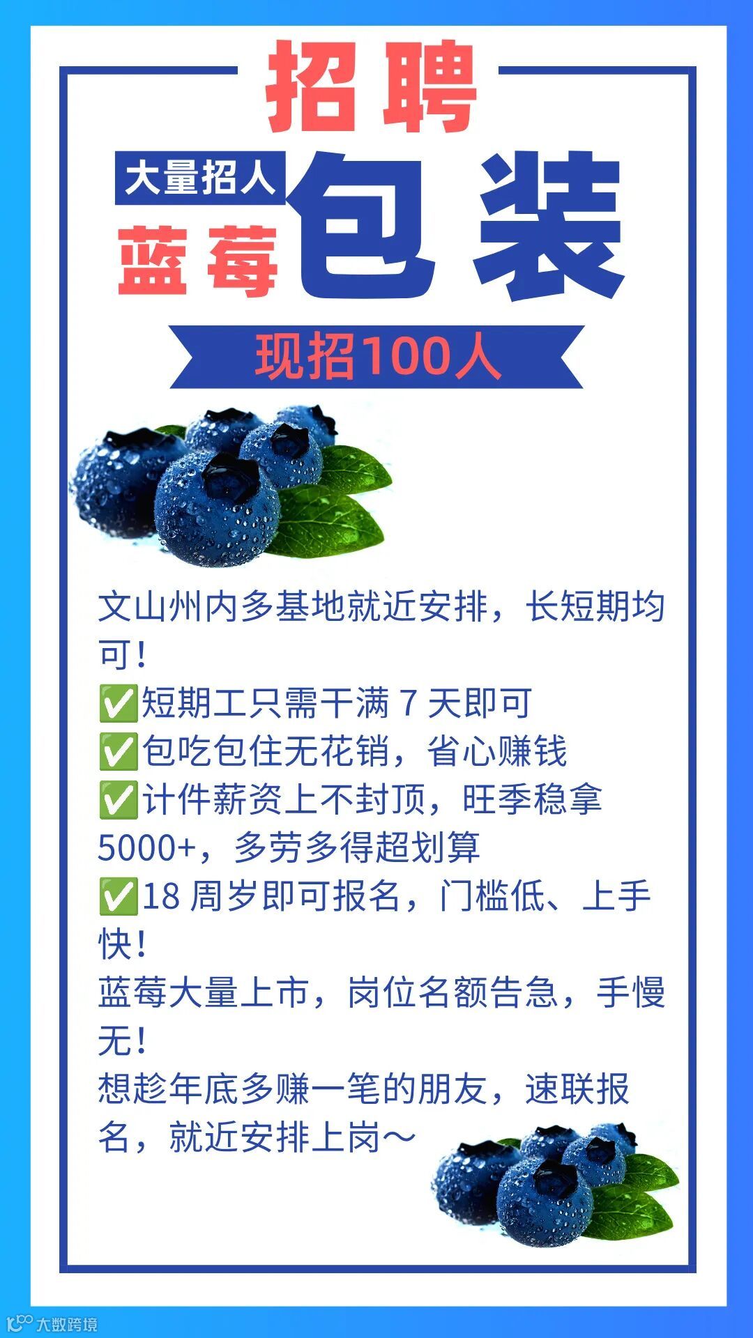文山蓝莓包装工急招|月薪 5000+ 包吃住 就近安排