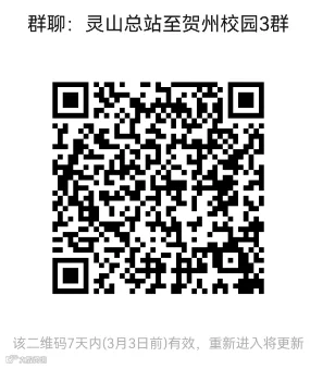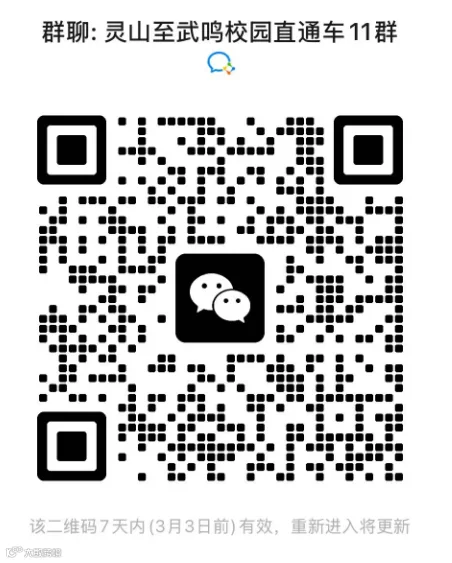 校区咨询群:用以通知车次车牌号、具体上车点等,点击图片长按即可识别扫码进群,进群失败请电联校区负责人