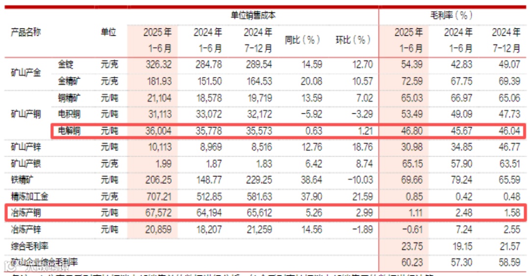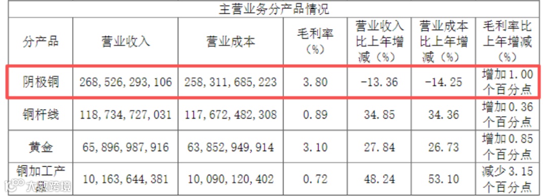其财报中并未对自产矿、外采矿进行细分,但2024年阴极铜整体的毛利率也只有3.8%。