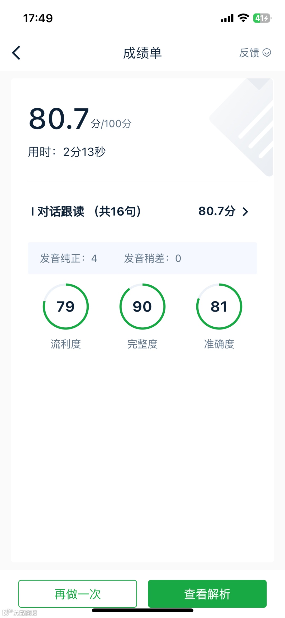 ● AI打分系统:实时获取发音准确度、流畅度、语音语调等反馈,使学习过程既有趣又高效。