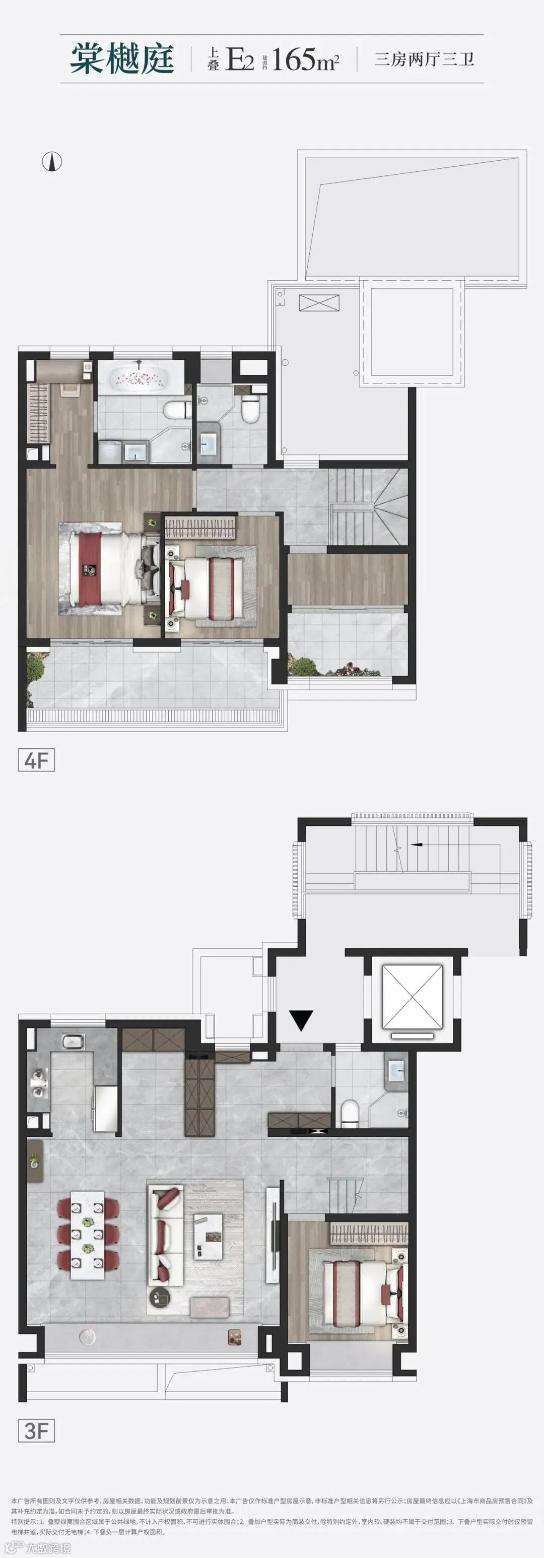 建面约165㎡上叠,自带露台!可以很好延展大家庭的生活情景,你大可置架秋千、撸猫遛狗、种植花草,到了周末约上三五好友,来一场露台BBQ,也可以胜任太太的闺蜜趴,格调非凡,刷屏社交圈。