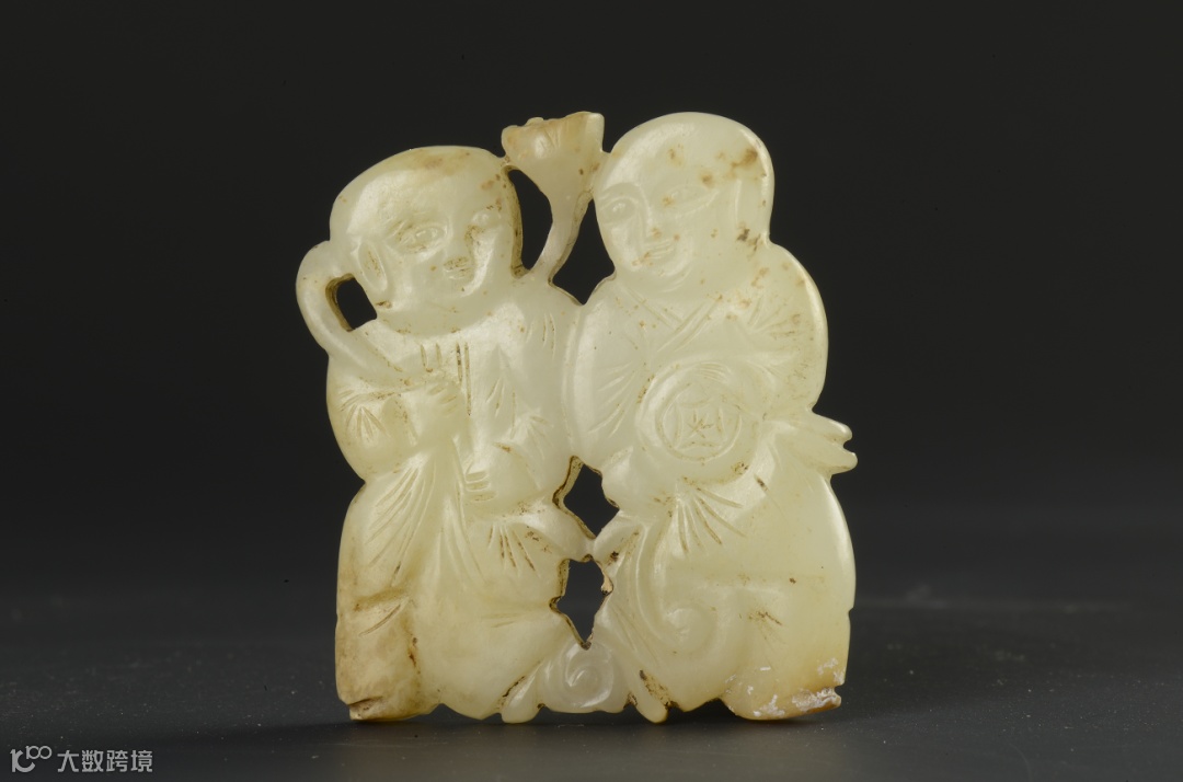 河姆渡遗址出土,距今约6500年,是河姆渡遗址出土众多艺术品中的绝品,也是河姆渡文化的标志。象牙材质,正面中部以阴线雕刻出一幅寓意深奥的图案,由五个大小不等的同心圆构成的太阳纹,上端刻划出炽烈的火焰状,象征太阳的光芒,两侧各有一只展翅欲飞的鸟,圆圆的眼、长长的嘴巴,它们昂首相望,向着太阳。鸟头部两侧各钻有两小圆孔,下侧各钻有一小圆孔,圆孔间以弦纹间斜线组成连弧纹图案。长16.6厘米、残宽5.9厘米、厚1.2厘米。