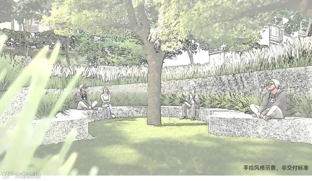 区别于繁花三章,绿城·沁香园以「柔化边界·城市渗透」的手法,借助地块边的一条城市绿带,设计「一轴三园」,让社区成为一座有活力的城市单元。
