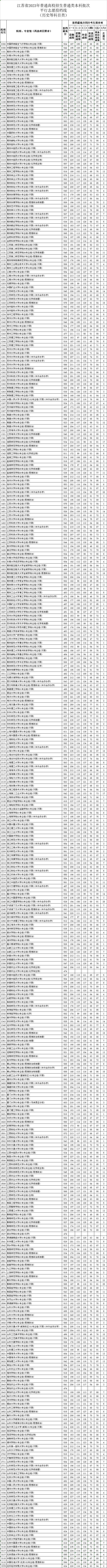 江苏省2023年普通类本科批次平行志愿投档线(历史等科目类)