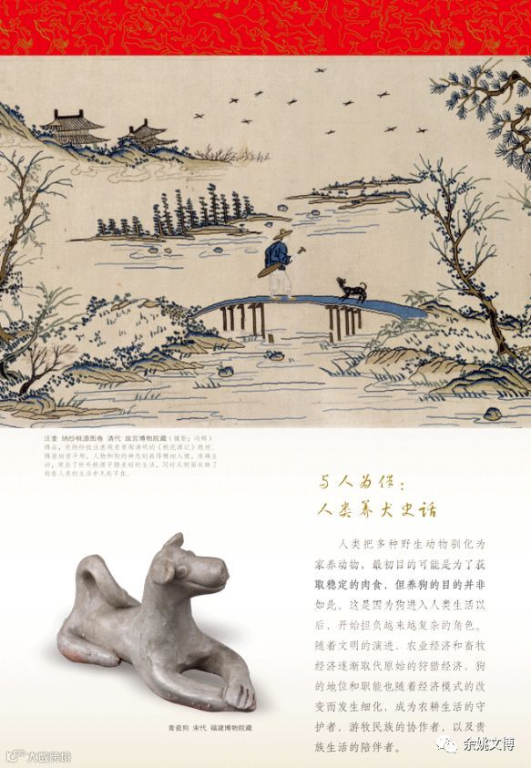 在这风和日丽的时节,为迎接2018年国际博物馆日的到来,来自全国20多家博物馆和宁波各区县(市)8家国有文博单位以狗为题材的31件(套)文物、非遗作品和数百幅文物图片,相约相聚在余姚博物馆,通过 “ 图片+文物+非遗作品 ” 的形式向观众展示 “ 犬之由来 ” “ 与人为伴 ” “ 造物颂犬 ” 的故事,从自然、历史、文化、艺术和民俗等多个角度详细诠释生肖狗从古到今的故事,以及它与人类之间的密切关系。