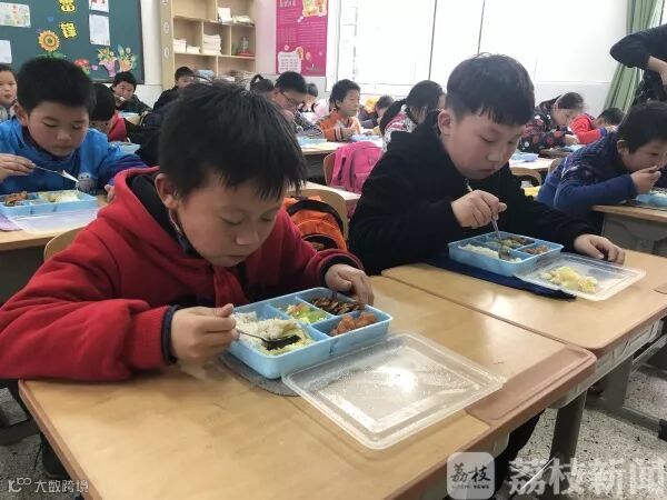 “学校要求每一个中午看饭的老师,在第4节课铃响之后去拿饭,然后到教室里面跟孩子一起吃饭。”南京市江东门小学三(五)班班主任李泽茹给记者看了她的饭盒,“我们每天中午吃的菜还有饭,跟孩子都是一样的,就是量会稍微多一些。”