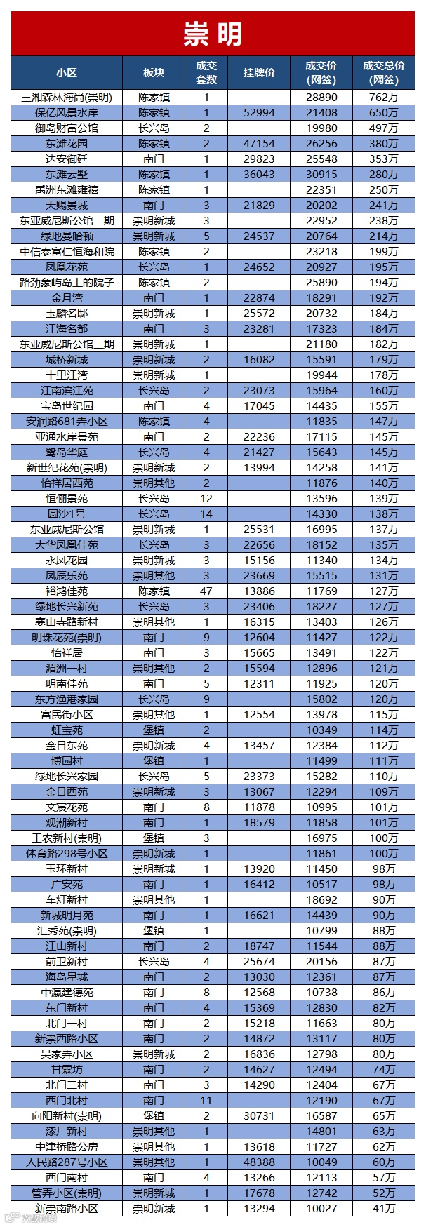 按成交总价从高到低排列,2套以上就是成交均价
