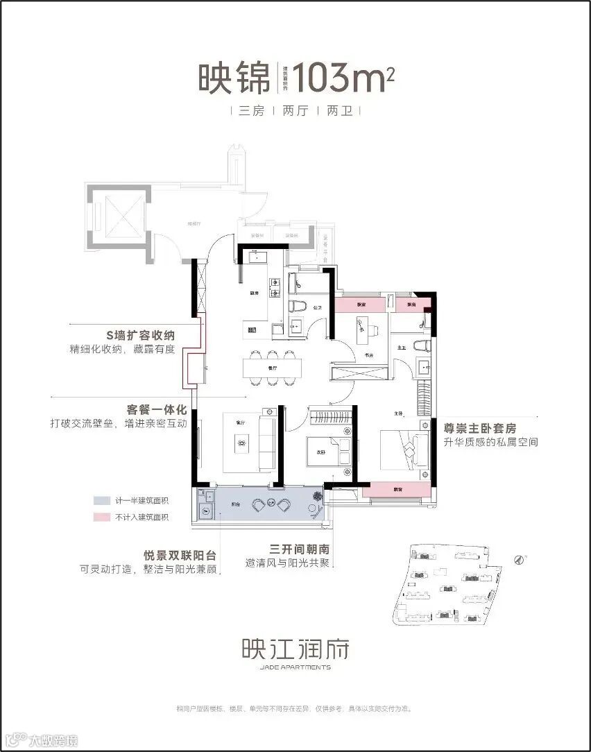 作为华润置地海派3.0作品,映江润府的卷,更在于其硬核的产品力,尤其在户型的设计上,堪称卷到极致。映江润府全盘仅规划89和103两种户型,每个都堪称王炸。
