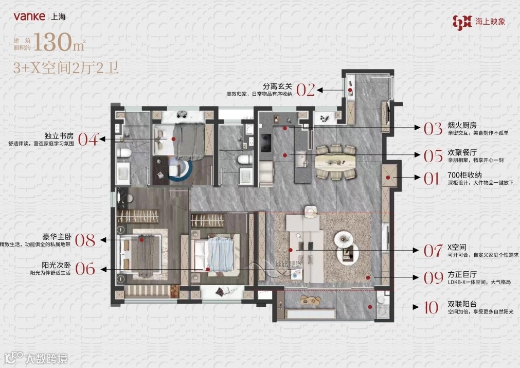 「约130㎡ 3+X空间2厅2卫」