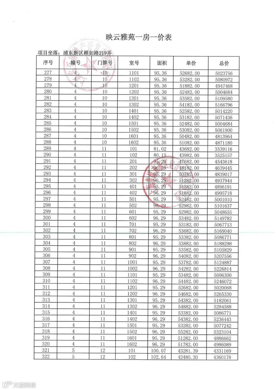 「一房一价表」