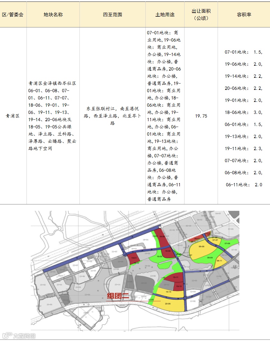 青浦区金泽镇西岑社区06-01、06-08、07-01、06-11、07-07、18-06、19-01、19-06、19-11、19-13、19-14、20-06地块及18-05、19-05公共绿地、泽立路、兰科路、泽厚路、云腾路、聚云路地下空间