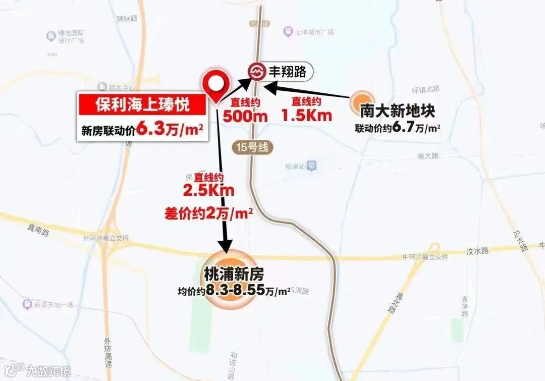 相较于同一板块、距离丰翔路地铁站更远的金茂新盘,房地联动价6.7W/㎡,保利·海上瑧悦倒挂4K/㎡,亦属于南大目前的价格洼地。