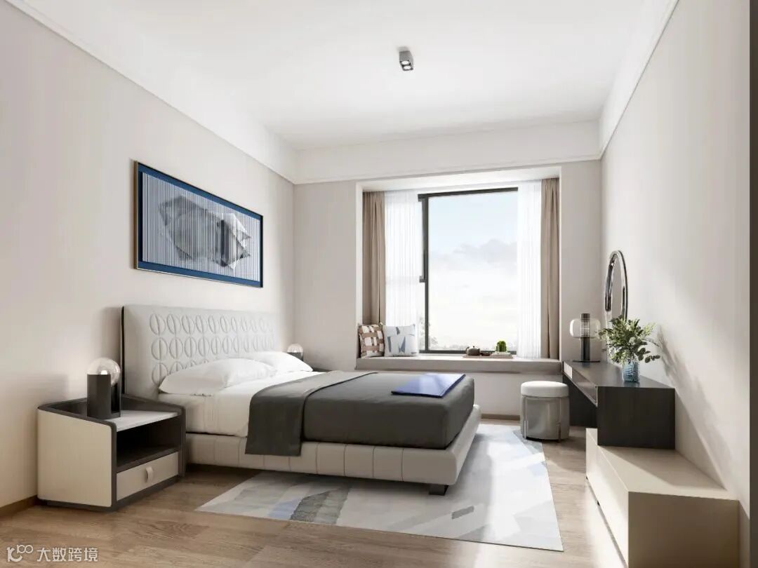 全飘窗设计,精装/毛坯交付均有。根据联动价计算,百平户型总价在500万左右,适合刚需上车。