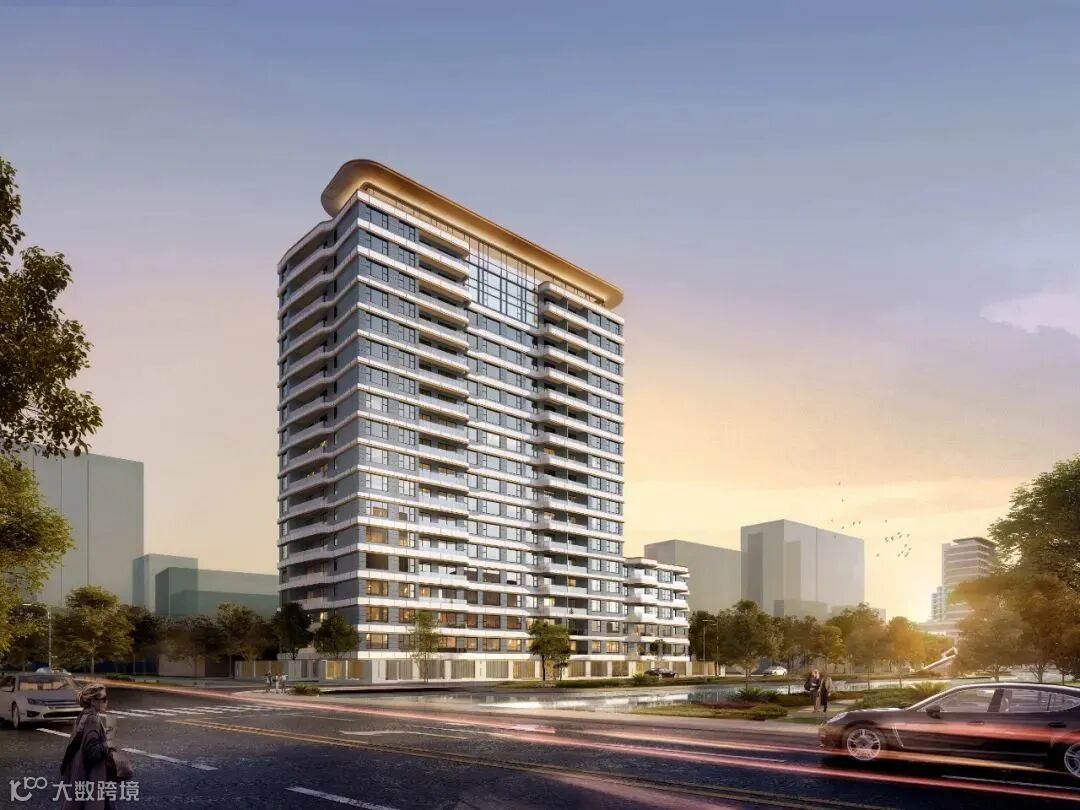 从图上来看外立面应该是铝板+大面积玻璃组成的,建筑顶部采用了市面上少见的弧形塔冠装饰,视觉效果比较丰富。