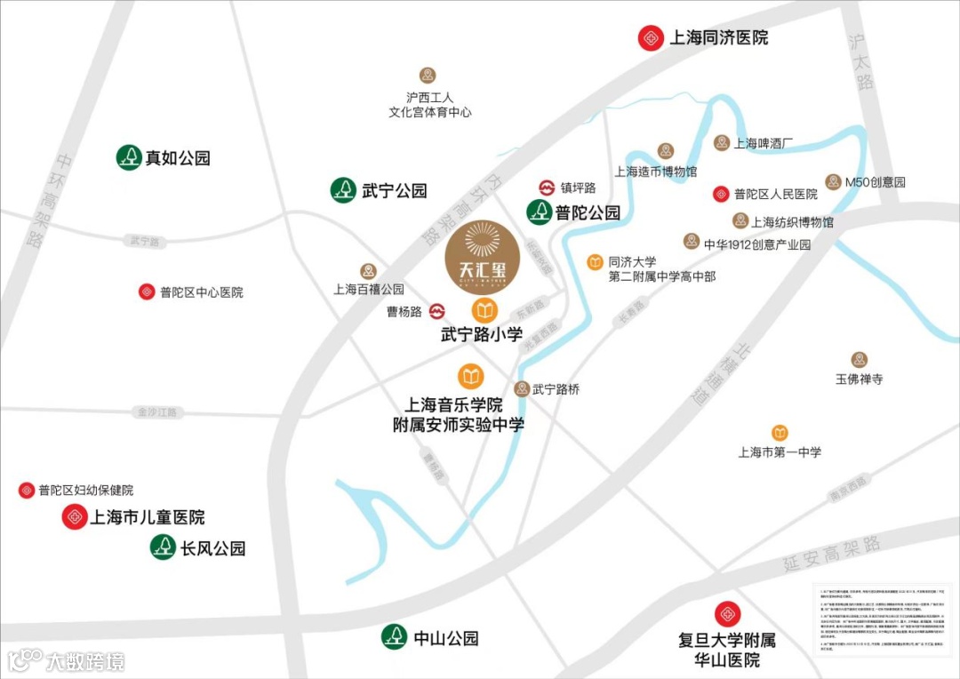如果说占位苏河畔是「天汇玺」难以复制的标签,那么坐拥内环成熟配套则是其得天独厚的先天优势。