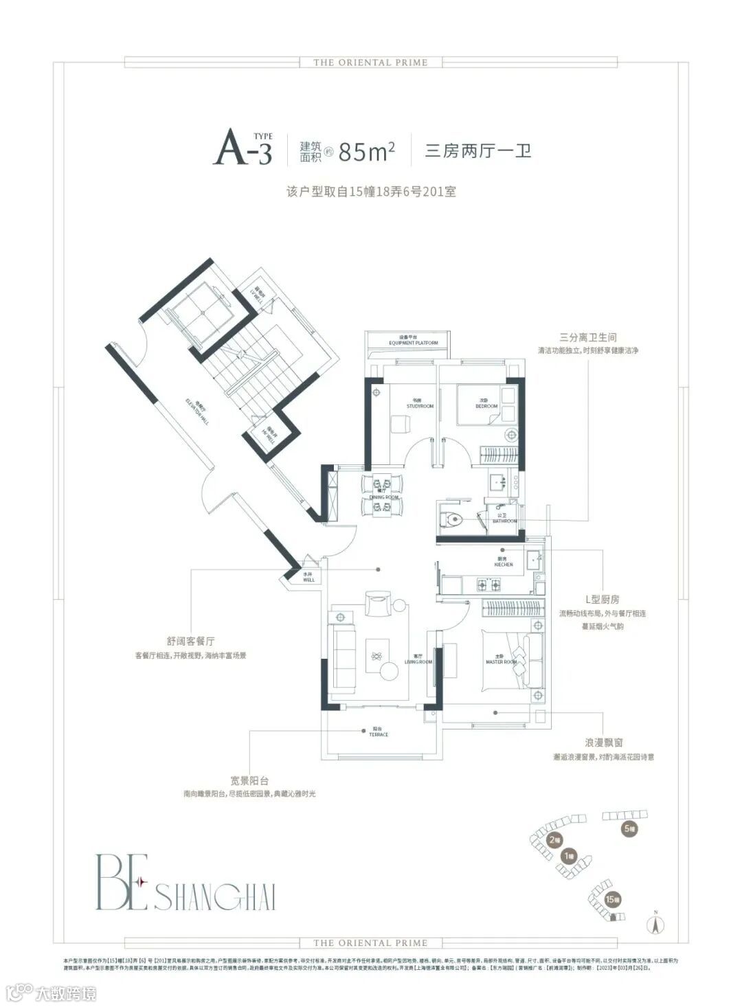 A户型:约85㎡三房约114套
