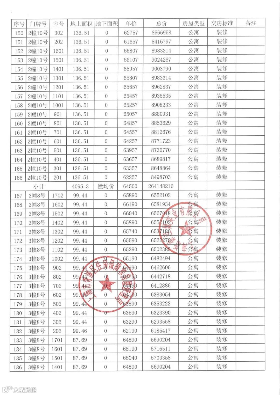「一房一价表」