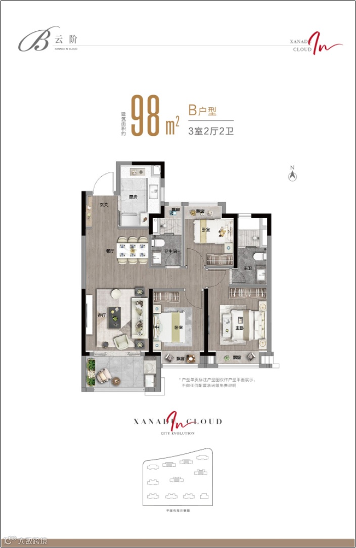 户型解析:98㎡和100㎡进阶型3房,81%以上的超高得房率,相同面积之下,更超值的尺度感受,同样每间房间都带飘窗,只是通过餐厨分布的细微区别,满足不同家庭的起居文化:更希望厨房空间独立、少对流的家庭可选择98㎡,而更注重餐厨一体、同时享受烹饪、互动乐趣的家庭,100㎡就是心之所属。