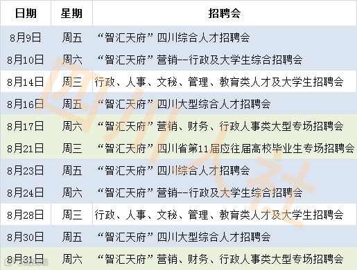 四川人才预计举办11场招聘会
