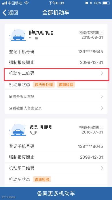 方式一:扫码备案:选择待备案机动车,生成机动车二维码,用户扫描二维码。