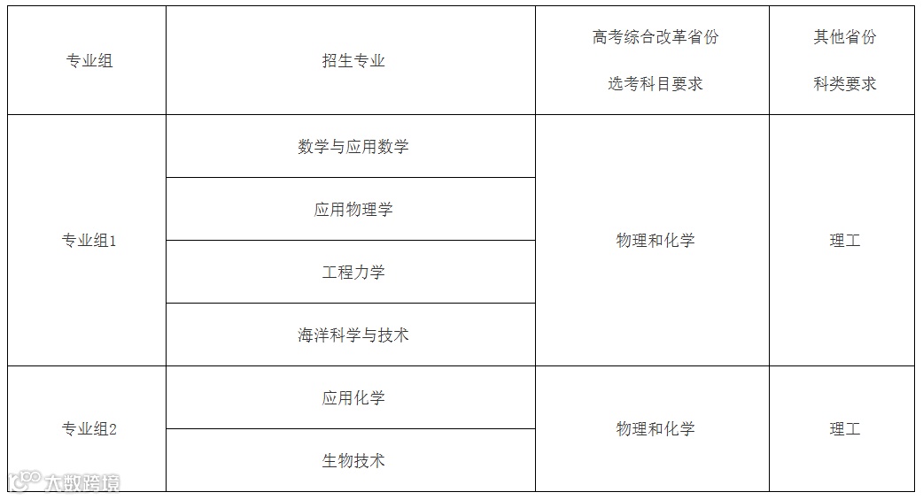 我校强基计划招生专业、选考科目、科类要求见下表:
