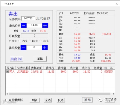 对于未成交的订单,可鼠标双击直接撤单。或者 选中后 点击 ‘撤单’按钮撤单。鼠标单击 进入 新的委买/卖。