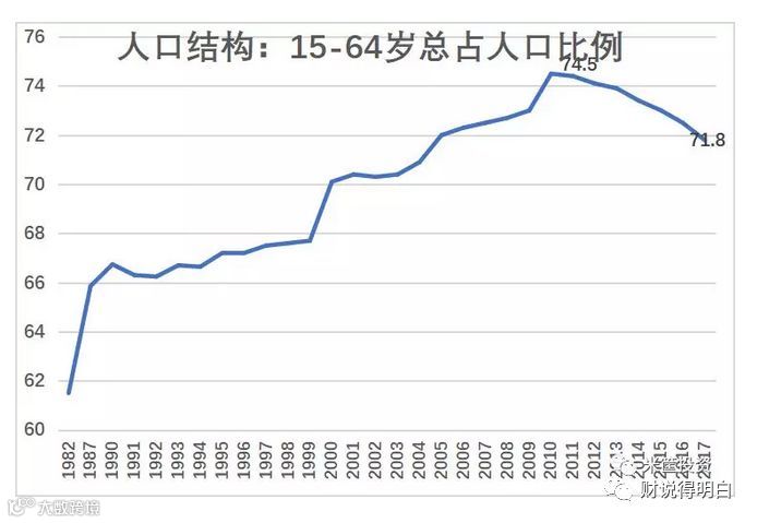 如果我们把国内15-64岁人口占总人口的比例放到一起看,会发现这些人口占比与国民储蓄率几乎是同步的,都是从2008-2009年之后开始进入到下行趋势里。