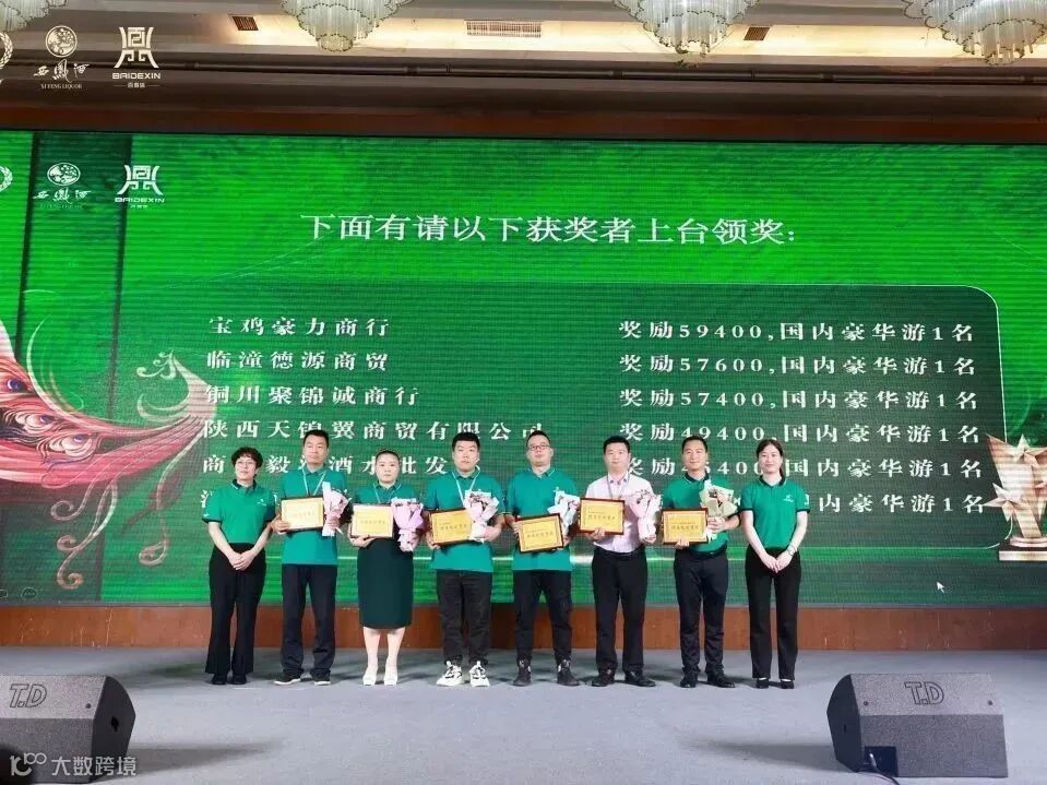 其中小雷酒业获得突出贡献奖;西安鑫兴酒业,八零后商行,西安谦达酒业获得卓越经销商;选举超市、洲诺商贸、西安天耀汇隆商贸有限公司、西安汉马酒业营销部、凯乐商贸、宝鸡云澜山商贸行、咸阳强强强商贸有限公司等获得明星经销商,另外还颁发了市场服务奖和优秀经销商奖。陕西西凤酒股份有限公司副总经理、营销管理公司总经理周艳花、陕西西凤酒营销管理有限公司副总经理亢建周,陕西西凤酒营销管理有限公司副总经理、中部大区负责人、陕西分公司总经理孟现磊,百得信公司董事长王政委,百得信公司总经理王亚梅、副总经理王静、营销总监王武劳共同为2022年度取得优异成绩的经销商进行表彰奖励。