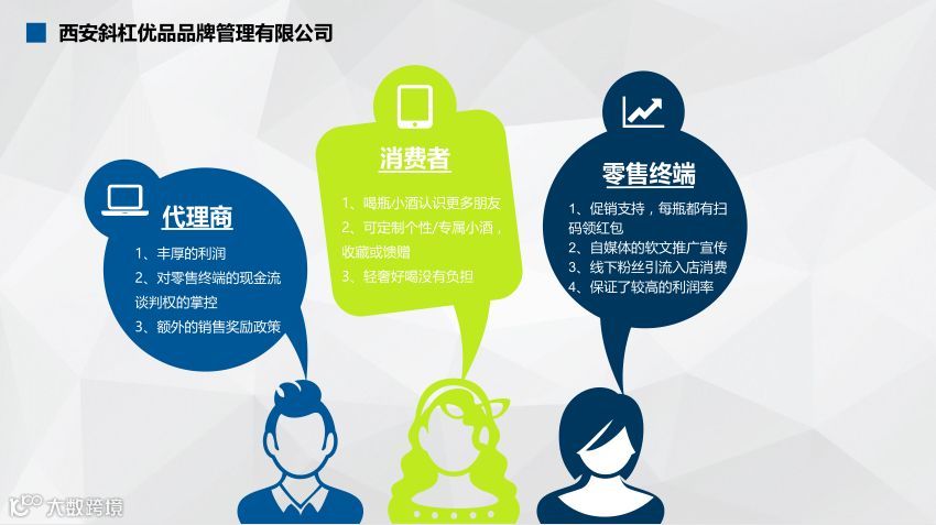 西安斜杠优品品牌管理有限公司是一家及品牌设计、创造及运营为一体的年轻时尚品牌管理公司。公司现运营“套路君”、“吐槽君”品牌时尚小酒,通过以白酒为载体传播品牌文化,让品牌具有斜杠属性(多元化、多重属性等),从而裂变出更多适合粉丝们使用的高性价比产品。