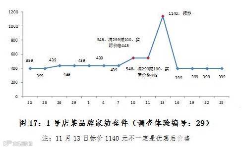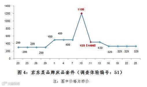 从10月29日-11月11日期间,京东平台某品牌床品套件标价由299元先一路上涨至1199元,再在11月11日当天降为439元,比涨价前的标价299元与双11促销结束后的329元都!要!高!