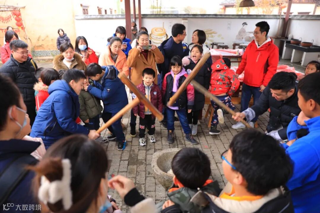 在这个温暖如春的冬天里,爸爸妈妈挥洒着汗水,将蒸好的糯米一锤一锤的敲打,旁边的小朋友们在观看,加油打气,这其乐融融的场景,这浓浓的人情味不就像一个大家族聚在一起过年的场景吗?