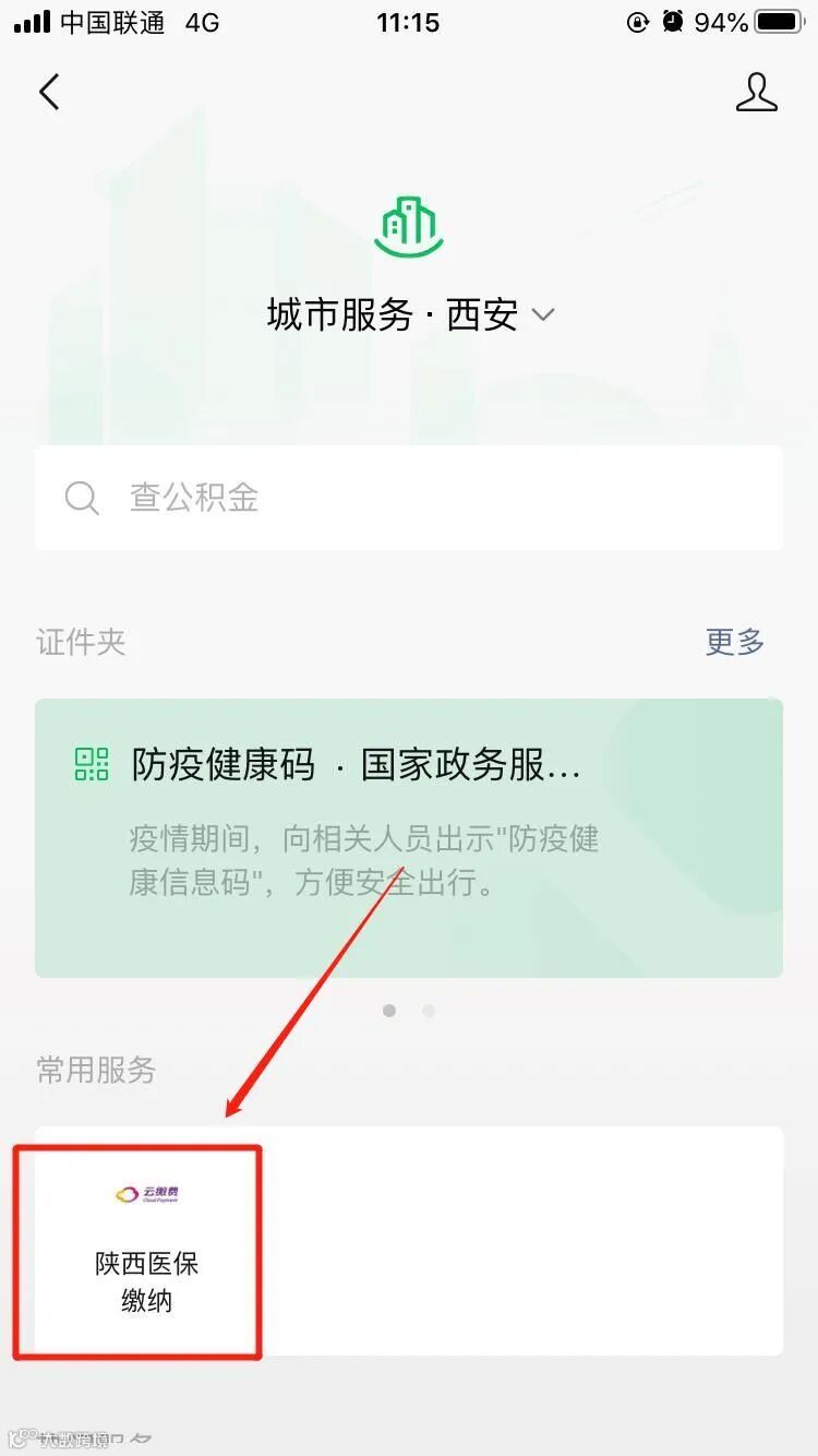 第三步:点击“陕西医保缴纳”