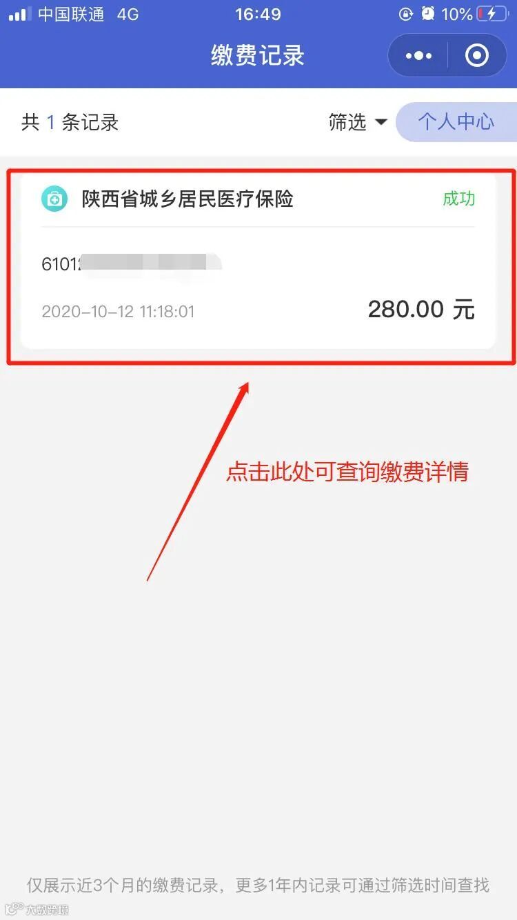 缴费完成后可进行“缴费记录查询”