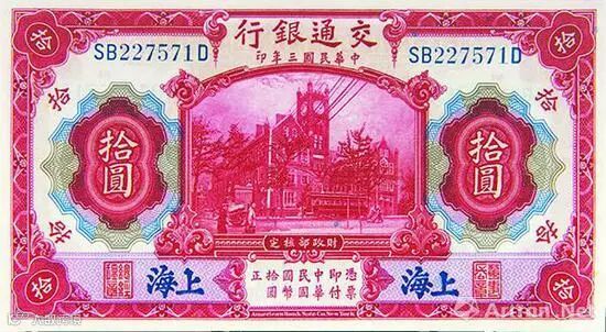 图2交通银行,其发行的拾圆券