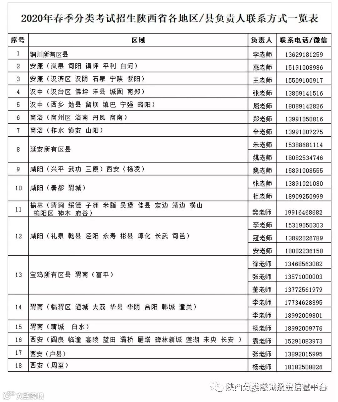 2020年分类考试招生各地区联系人一览表