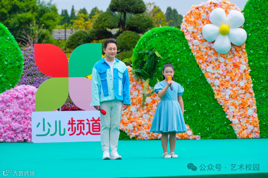 她像一朵轻盈的花儿绽放在舞台上,蓬蓬的裙摆随着欢快的步伐轻轻摆动,甜美的声音如银铃般悦耳。明亮的眼睛里盛满笑意,落落大方的模样让人忍不住为她鼓掌。在大手牵小手昆明行的录制现场和央视主持人同台。