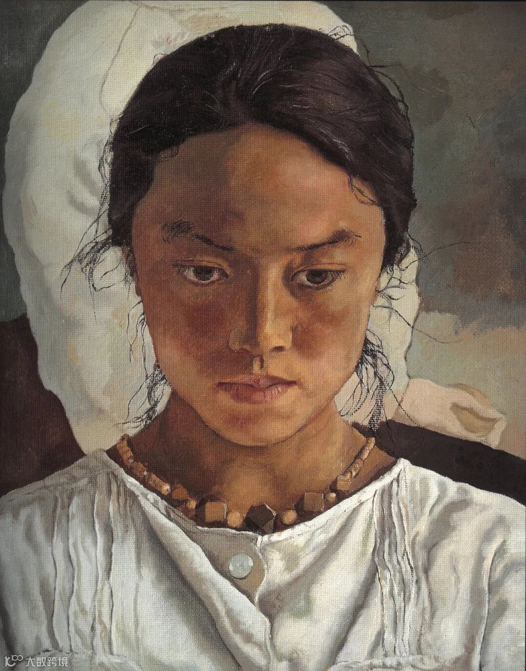 朝戈《蒙古女像》,布面油画